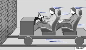 Abb. 76 Ein Fahrzeug fährt mit nicht angegurteten Fahrzeuginsassen auf eine Mauer zu.