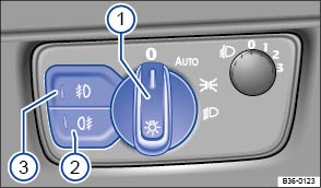 | Lichtschalter in gewünschte Position drehen → Abb. 104 ① : | ||