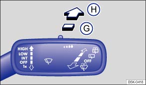 Intervallwischen für die Frontscheibe oder Regen-Lichtsensorbetrieb. |