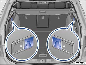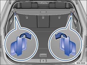 Im hinteren Bereich des Gepäckraums befinden sich links und rechts feste Taschenhaken → Abb. 131 .