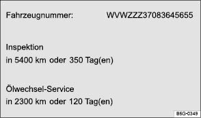 Wenn demnächst ein Ölwechsel-Service oder eine Inspektion fällig ist, erscheint beim Einschalten der Zündung eine Service-Ankündigung.
