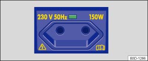 Bei stehendem Motor, eingeschalteter Zündung und eingeschaltetem elektrischen Gerät entlädt sich die Fahrzeugbatterie. Daher elektrischen Verbraucher an der Steckdose nur bei laufendem Motor verwenden.