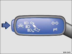 Abb. 23 Im Blinker- und Fernlichthebel an der Lenksäule links: Taste für Fahrerassistenzsysteme.