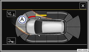Rotes Segment für ein nahes Hindernis am Fahrzeug. |