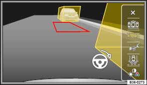| Zusätzlich wird im linken Bildrand auf dem Bildschirm des Infotainmentsystems die Miniaturansicht des ParkPiloten angezeigt. | ||