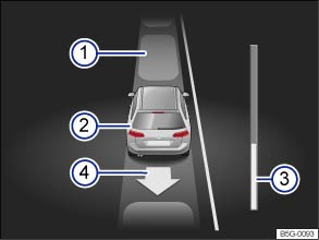 | Der Parklenkassistent übernimmt während des Ausparkvorgangs nur die Lenkbewegungen. Der Fahrer bedient das Gaspedal, ggf. die Kupplung und die Gangschaltung sowie die Bremse. | |