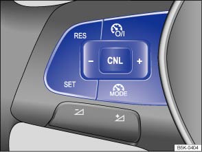 Abb. 205 Linke Seite des Multifunktionslenkrads: Tasten zum Bedienen der GRA.