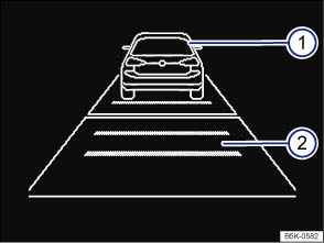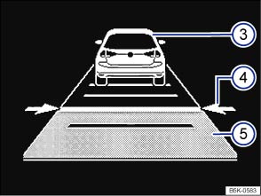 Bei weißer Darstellung: Automatische Distanzregelung (ACC) aktiv. Vorausfahrendes Fahrzeug erkannt. Die automatische Distanzregelung (ACC) regelt Geschwindigkeit und Abstand zum vorausfahrenden Fahrzeug. | – |