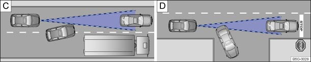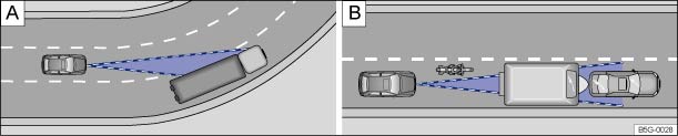 Die automatische Distanzregelung (ACC) hinter Fahrzeugen mit besonderer Beladung oder speziellen Anbauten sowie beim Überholen solcher Fahrzeuge ausschalten. Das eigene Fahrzeug, wenn notwendig, selbsttätig abbremsen.