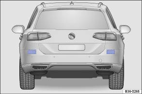 Abb. 225 Heckansicht des Fahrzeugs: Bereiche der Radarsensoren.