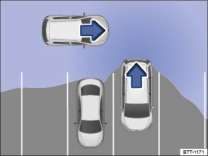 Der Ausparkassistent überwacht mithilfe der Radarsensoren im hinteren Stoßfänger → Abb. 225 beim Rückwärtsausparken aus einer Parkbox oder beim Rangieren den Querverkehr hinter dem Fahrzeug, zum Beispiel bei schlecht einsehbaren Verkehrssituationen → Abb. 228 .