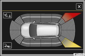 Gelbes Segment für eine mögliche kritische Situation hinter dem Fahrzeug. |