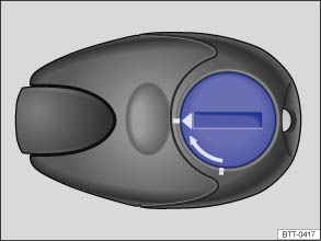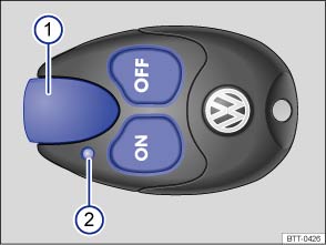 Eine optimale Reichweite wird erzielt, wenn die Funk-Fernbedienung mit der Antenne → Abb. 239 ① senkrecht nach oben gehalten wird. Dabei die Antenne nicht mit den Fingern oder der Handfläche abdecken.