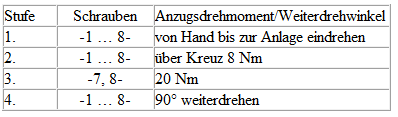 Schrauben, die mit Weiterdrehwinkel festgezogen werden, ersetzen.