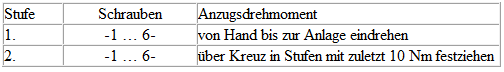 - Schrauben in Stufen wie folgt festziehen: