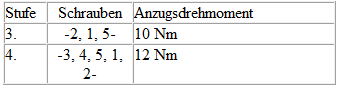 - Schrauben in der genannten Reihenfolge voranziehen: