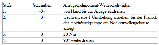 Hochdruckpumpe - Anzugsdrehmoment und -reihenfolge