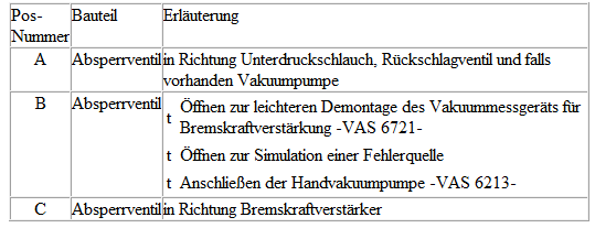 Anstelle des Motors oder der Vakuumpumpe kann das Vakuum in bestimmten Fällen auch mit der Handvakuumpumpe -VAS 6213- erzeugt werden.