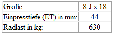 Die nachfolgend aufgeführten Hinweise gelten auch für Reserveräder, z. B. 6 J x 17 mit Reifen 205/50 R 17, die mit einem gelben Aufkleber mit der Aufschrift "MAX 80 km/h" bzw. "MAX 50 mph" gekennzeichnet sind.