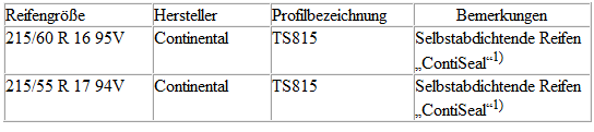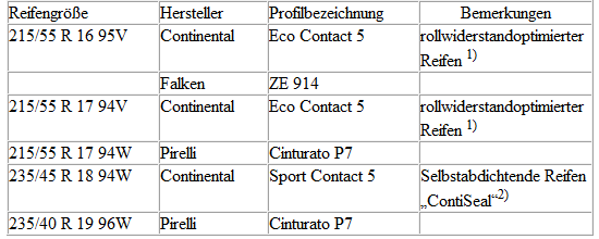 Immer die Räder/Reifen-Zuordnungen zu den jeweiligen Motorisierungen beachten, die in der Übersichts-Tabelle aufgeführt sind.