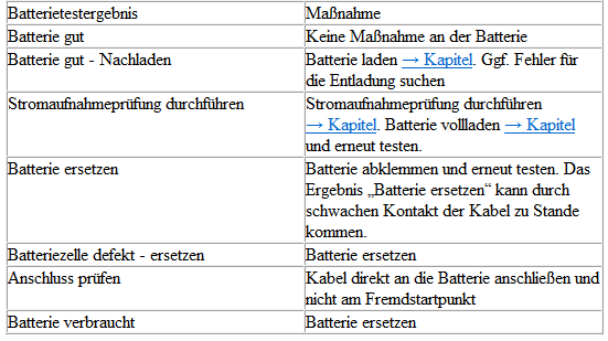 Zu dem jeweiligen Fahrzeug ist das Kapitel Batterie zu beachten.