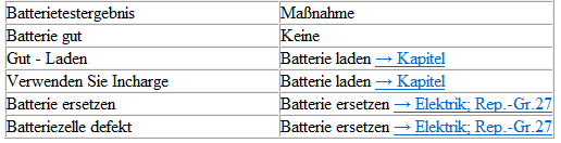 Auswertung des Batterietestergebnisses für den Wartungstest.