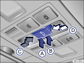 | Ausgestelltes elektrisches Panorama-Schiebe- und Ausstelldach schließen. | Taste im vorderen Bereich Ⓐ bis zur 1. Stufe drücken.