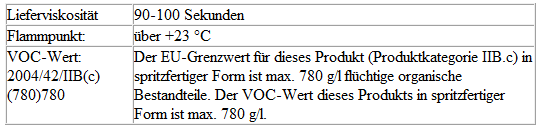 - Spritzfertige Einstellung 8-10 Stunden bei +20 ºC