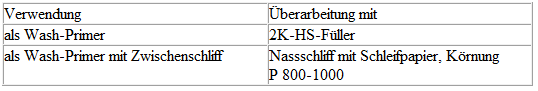 - Bei Verwendung als Wash-Primer einen Spritzgang auftragen.
