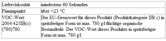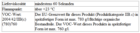 - Verarbeitungsviskosität 4 mm bei +20 ºC, DIN 53211