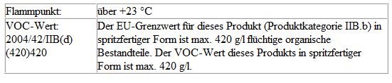 - Spritzfertige Einstellung 45-60 Minuten bei +20 ºC (abhängig vom eingesetzten Härter)