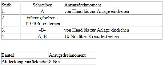 - Abdeckung über den Einrückhebeln, falls vorhanden, einbauen. Anzugsdrehmoment: